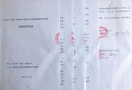 为深入贯彻落实农业农村部等十部委联合印发的《关于加快推进水产养殖业绿色发展的若干意见》,日前,中国水产科学研究院黄海水产研究所与正大水产(厦门)有限公司(以下简称“正大公司”)签署科技合作协议,旨在发挥双方科技与产业优势,共同推动我国水产养殖业绿色发展。