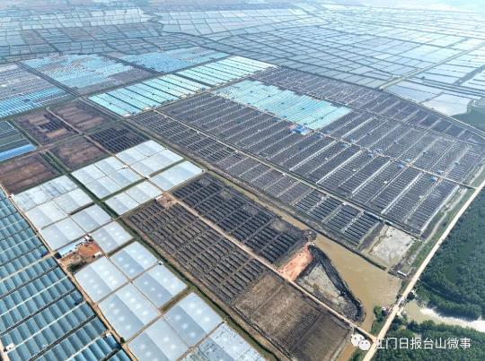 走进广海烽火角养殖基地,连片的新型环保塑胶大棚把养殖区划分得整整齐齐。