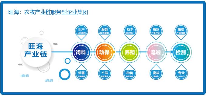 旺海以精品饲料为主业,围绕特种水产养殖,打造苗种繁育、动物保健、水产饲料、健康养殖、水产品流通、农产品安全检测等业务,建成全产业链的专业服务体系。通过这个服务体系,努力为养殖全过程提供可靠支撑,是旺海的发展逻辑,通过体系支撑帮助客户养好每一条鱼。