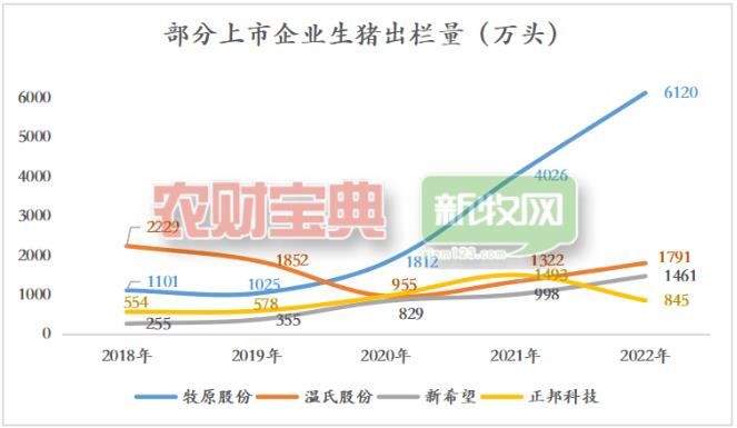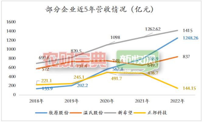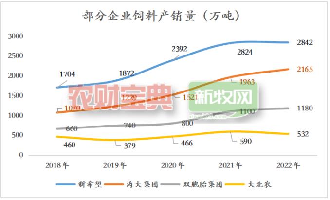饲料业务是新希望最核心的支柱之一。2022年,新希望饲料内外销饲料合计达2842万吨,约占全国总量的9.4%,稳居全国第一。