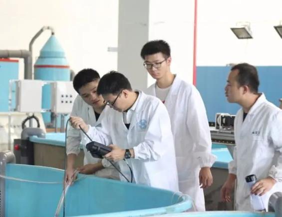 王欢和学生在实验室探索青蟹养殖方法