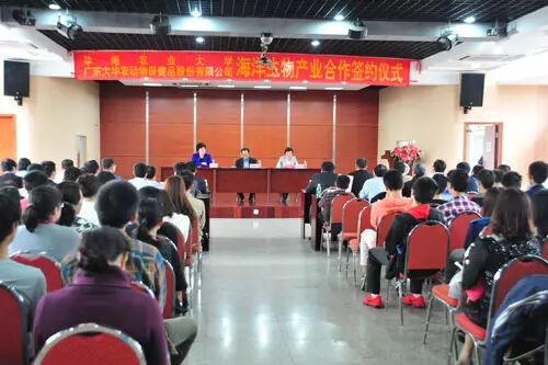 据悉,华南农业大学海洋生物研究中心(下称“中心”)挂靠华南农业大学动物科学学院,下设海洋健康养殖技术研究室、海洋生物繁殖育种研究室、水产营养饲料研究室、海洋生物病害与安全研究室、海洋食品工程研究室。“中心”由中国工程院院士麦康森担任名誉主任,刘雅红副校长任主任,动科学院刘文生教授、陈瑞爱总裁任副主任。“中心”的成立,将更好地贯彻落实国家关于《广东省海洋经济综合试验区发展规划》及《中共广东省委广东省人民政府关于充分发挥海洋资源优势努力建设海洋经济强省的决定》,依靠该校多学科性和综合性特点,搭建海洋生物研究平台,充分整合校内外优质科研资源和协同创新实力,做强、做大一批涉海学科和专业,形成具有热带亚热带特色的研究领域。