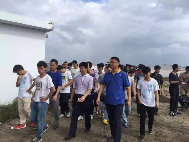 雨过天晴,在陶场长的引领下,大家沿着基地的主干道依次参观了培藻车间、育苗车间、亲虾车间、生态育苗池等。整洁标准的车间,鳞次栉比的45个生态育苗池,先进的陶氏净水设备,高高矗立的二氧化碳液体储槽,设计巧妙的藻类培养跑道池,一条虾苗要经过18项检测合格才能出场的质量管理体系等等,无不让参观者感到兴趣盎然、敬佩不已。大家不断地向场长提问,认真地听讲。在此过程中,有的同学拍照留念,还有的同学直截了当地问利洋苗系统要不要人,希望自己能够加入这个团队。